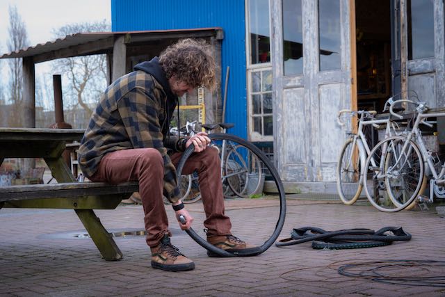 Deze Vuilnisbelt is stoer, stevig en handgemaakt van een afgedankte fietsband.